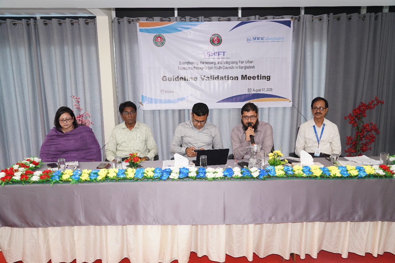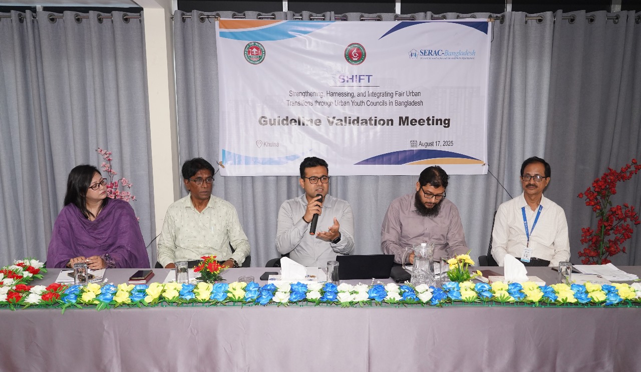 A significant step has been taken in Khulna to ensure youth participation, leadership, and active engagement in local governance. Under the “SHIFT” project of SERAC-Bangladesh, a guideline validation meeting was organized by SERAC-Bangladesh in collaboration with Khulna City Corporation to finalize the guideline for the formation of the Urban Youth Council.